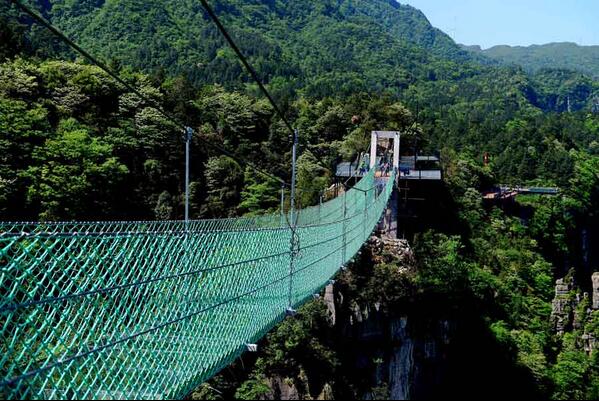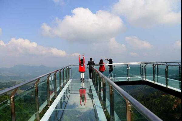 悬挂在300米高空,跨度150米的玻璃桥形成的一条空中通道。你是大踏步迈过?还是举步维艰?除了挑战的满足感,你还收获了喀斯特地貌的美景。