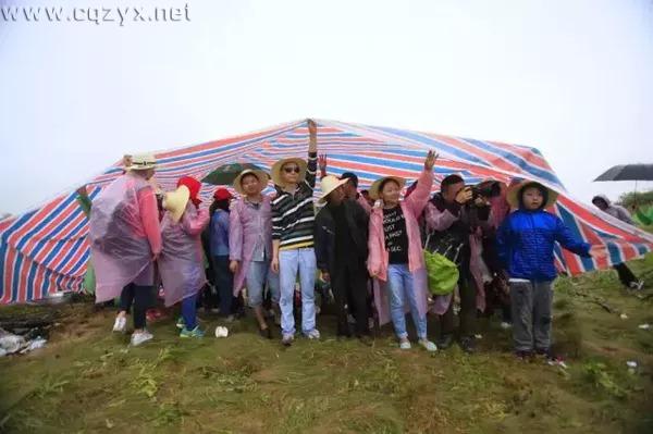 终于到达我们的营地了,但刚到就开始下大雨,大家合力撑起了雨棚躲雨!