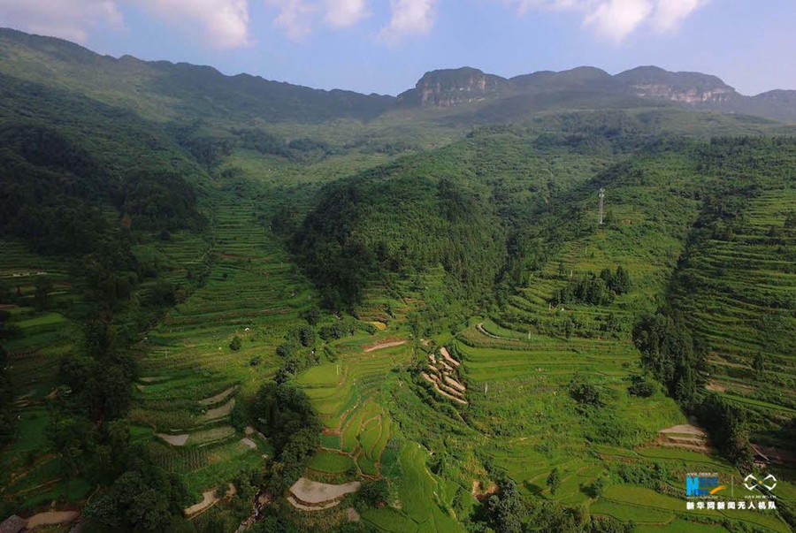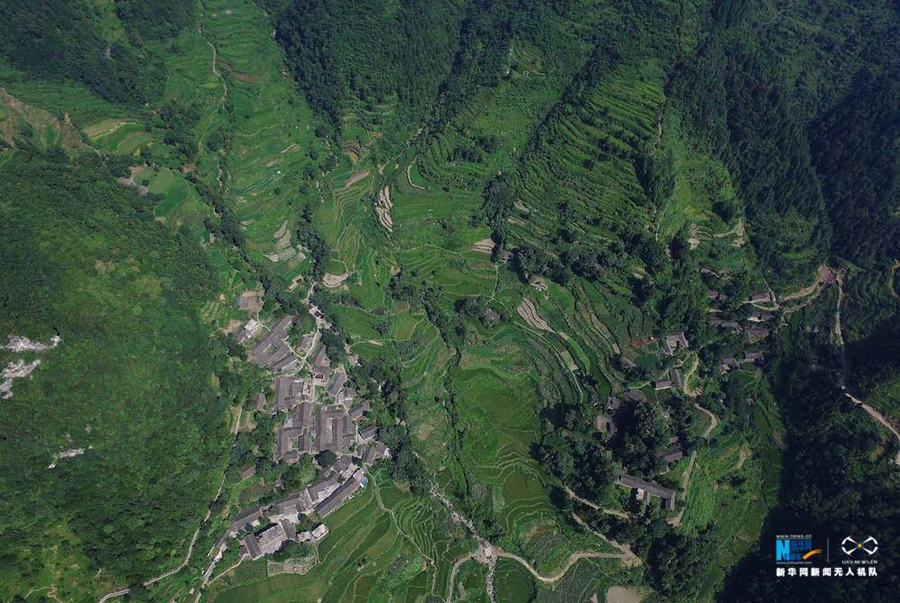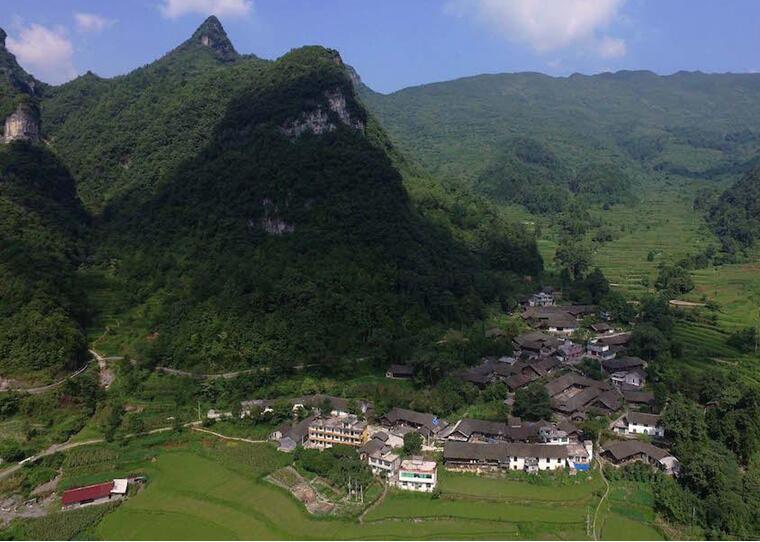 图为航拍位于重庆酉阳板溪镇山羊村。