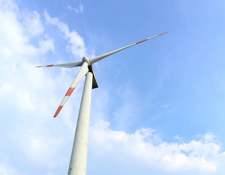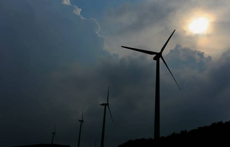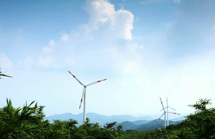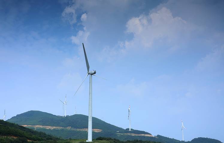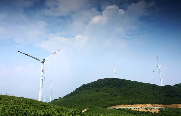 站在山顶上,能看见大片的云雾萦绕在绿色的山头上。你能想象得到风车这么大,需要多大的风才能转动它们吗?