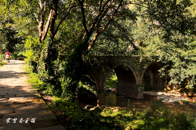 行至上平桥处,过桥便能抵达观音阁,也就是当地人叫龙华寺的地方。平桥盐马古道隐藏在观音阁身后,据说已有上千年历史,共有青石板九万九千九百九十九块。好奇地询问当地人,是否有人可曾仔细数过,得到的答案颇为有趣:“樊傻儿估计数过”。原来,这条古盐道曾经是电视剧《傻儿师长》的拍摄地。