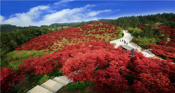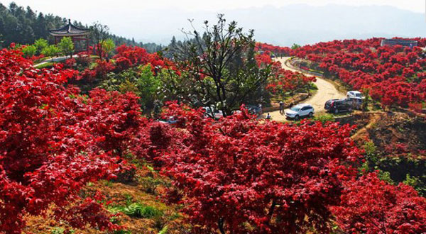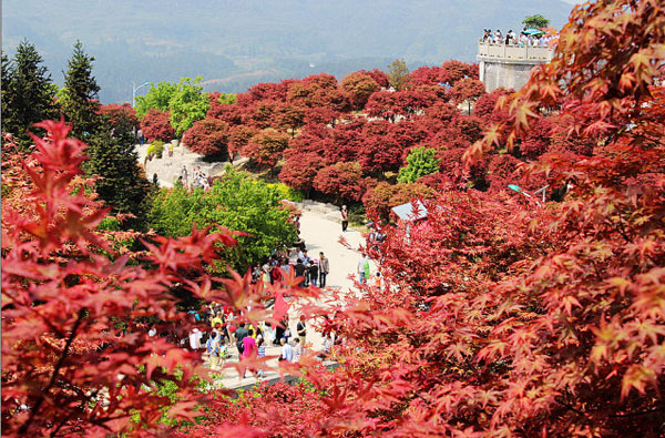 重庆五洲园四季都具有特色,春天赏花、夏天纳凉、秋天采摘果实、冬天赏雪景,整个四季都可以观看到不同的名贵花木。2月开始就慢慢进入赏花阶段,2月可以赏红梅、桃花、红叶、春娟;3月可以欣赏到除红枫外,还可以欣赏到石楠、樱花、玉兰、紫鹃等。到了4月份,整个园区就已经是满地开花,处于最佳的赏花时期。园区内最为可贵的是,有一道自然的景色——云海和日出,在那里每天都可以观看。