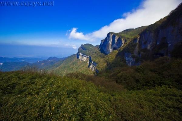 金佛山:金佛山是国家5A级风景区,四季景色各异春是花的海洋、夏是避暑天堂、秋是满山 红叶、冬是冰雪世界。金佛山山势雄奇秀丽,景色深秀迷人。