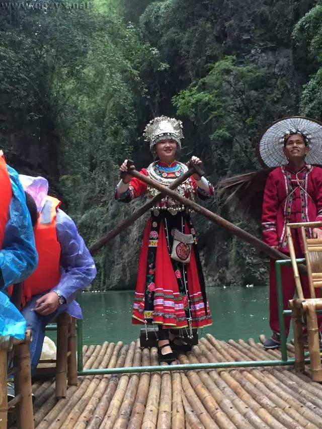 从青龙谷一路前行,摄制组一行来到竹板桥码头登上当地人特制的竹筏,游览了幽深的七里塘峡谷,这里两岸翠竹环绕,碧潭深谷,船行其间,宁静犹如世外桃源,河水清澈见底,鱼翔浅底,飞鸟穿行;听娇阿依吼上一曲山歌,歌神悠悠,回响于山谷间,与鸟鸣、水流声汇成天籁之音。