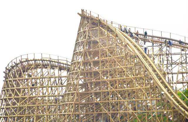重庆欢乐谷木质过山车成为西南最大、最长的过山车项目,和国内外许多木质过山车不同的是,重庆欢乐谷的木质过山车依山而建,顺势而成,是真正的山地版。