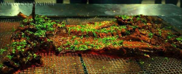 一只活羊跟你牵过来,一称重量大小觉得合适就算成交,交上押金,再出去活动3、5小时,香喷喷的烤全羊就在炭炉上出来了。武隆的烤全羊,麻、辣、干、香,围着炭火,戴上塑料手套,一人一把小刀就在烤羊上割起自己中意的部分,然后满口满口下咽。同时,店家还会留一部分来,跟你铁丝穿了,自己过一把烧烤的瘾。其他的羊杂碎,店家则给你加上武隆绿色食品之一的高山萝卜,炖出一锅鲜美的清汤来,如果你吃烤羊吃辣了,就可以喝上一碗羊杂碎汤,岂不妙哉。