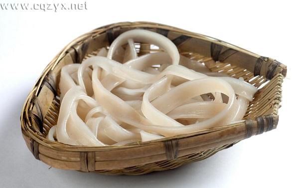 苕粉是武隆人进食火锅时必点的菜品之一。其原料红苕产于丘陵为主的地方,兼有低山、平地、气候温和、雨量丰沛、无霜期长、四季分明的武隆是优质红苕的理想产地。选取优质红苕经过去皮、研磨、制条、晾干而成苕粉成品,晶莹剔透、爽口、柔韧性强以及久煮不断的口感,让其荣登了“火锅好配菜”的宝座。