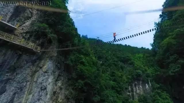 青龙桥由木板和铁索组成,在数百米的高空上,风吹来还会有些微晃动,不过挑战的就是心跳。