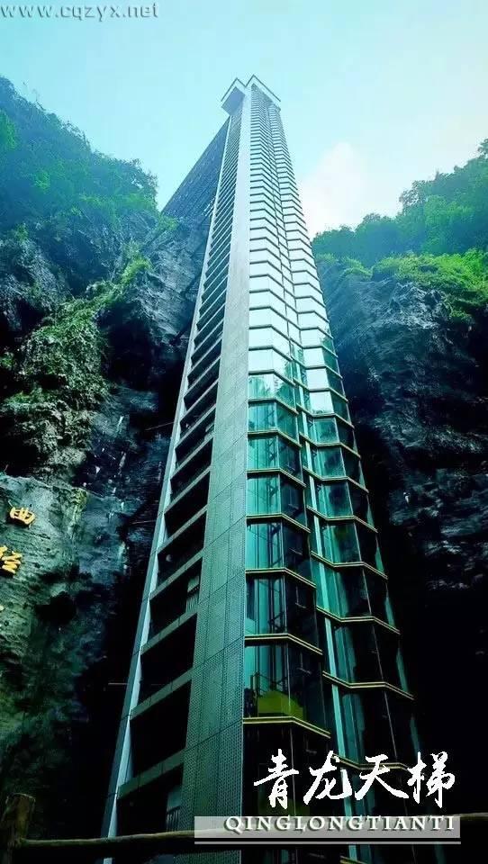 天梯纵深180米,运行高度148.8米,是高度位居亚洲第一的峡谷类全户外观光电梯,乘坐观光电梯,阿依河碧潭秀水,青龙谷峡谷丽景尽收眼底。