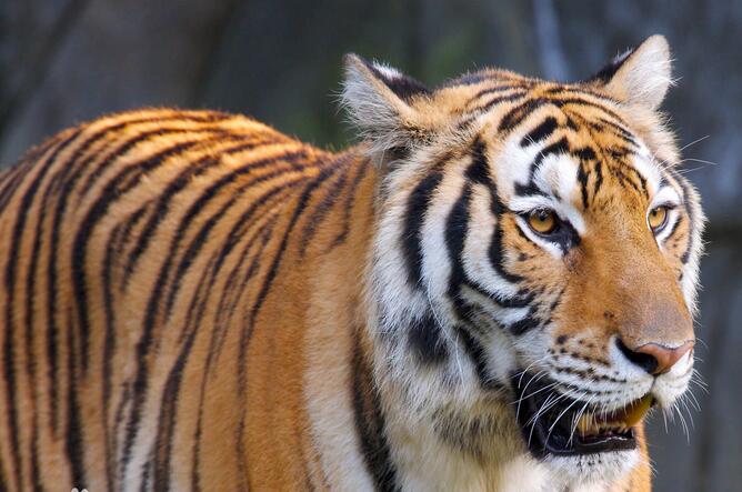 华南虎亦称“中国虎”,是中国特有和历史最悠久的虎种,可以说是所有老虎的鼻祖。生活在中国中南部。识别特点:头圆,耳短,四肢粗大有力,尾较长,胸腹部杂有较多的乳白色,全身橙黄色并布满黑色横纹。在亚种老虎中体型较小的华南虎,是中国的十大濒危动物之一,目前几乎在野外灭绝,仅在各地动物园、繁殖基地里人工饲养着100余只。
