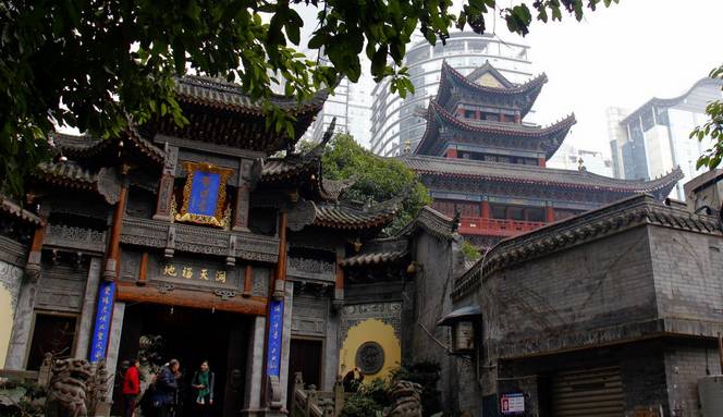 罗汉寺坐落在渝中区民族路,是全国汉族地区重点佛教寺庙之一。罗汉寺内长20多米的古佛岩,存有宋代摩岩石刻佛像400余尊,其中卧佛涅像、观音像和供养人像等,风格颇近大足宝顶山石刻。