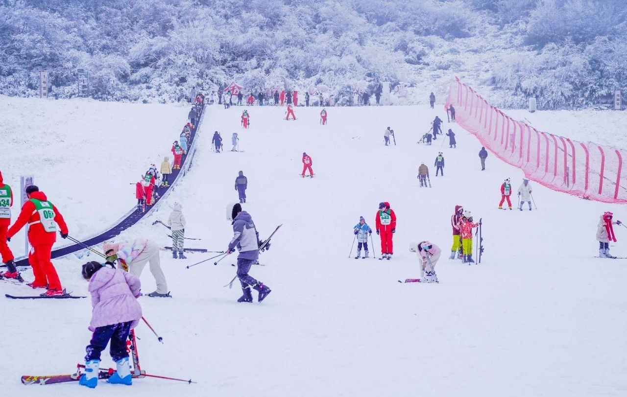 丰都南天湖则是一个宁静而美丽的湖泊,这里的冰雪景观别具一格。南天湖拥有10余个游乐项目的冰雪乐园,雪地摩托、雪地香蕉船、雪地飞碟……各种冰雪项目可供选择;占地600余亩的国际滑雪场,是重庆市内唯一具有高级滑道的户外滑雪场,无论是滑雪初学者还是“发烧友”,在这里都能找到属于你的滑雪乐趣;景区还拥有目前国内线路最长、智能化最高、时速最快的滑车体验项目,让你在银装素裹的世界里享受速度与激情。