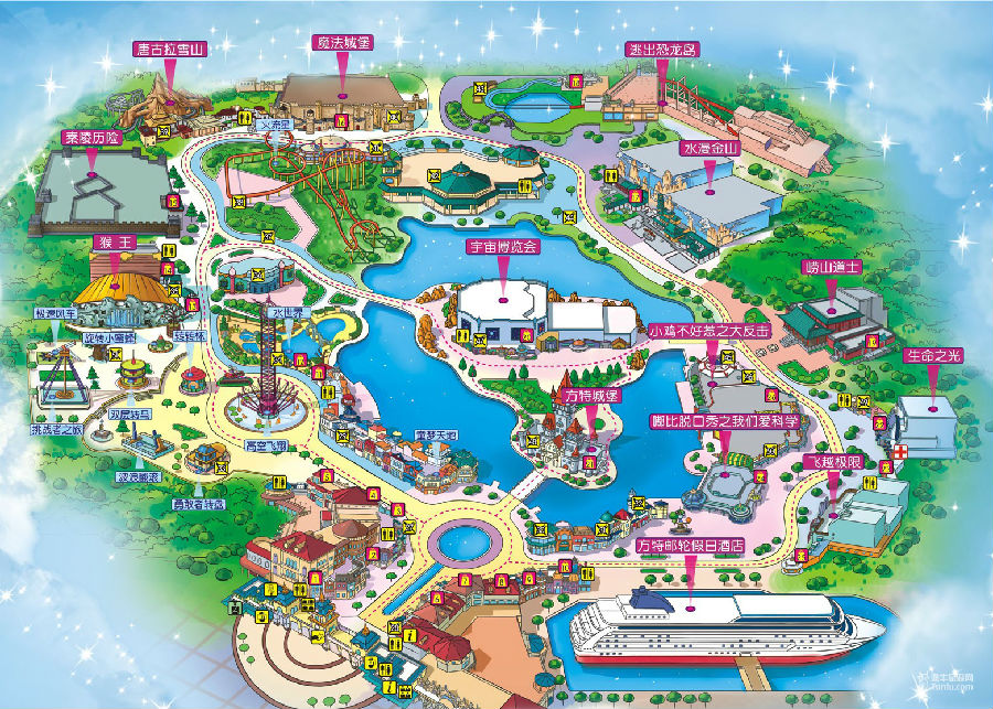 景区特点:上万平方米人造真沙海滩、水上过山车、极速冲刺滑道、大浪摆、魔法碗、海啸冲浪…这里可以尽情享受戏水乐趣,还有少数民族风情表演、海盗大巡游、滑板冲浪秀等节目可以观看。